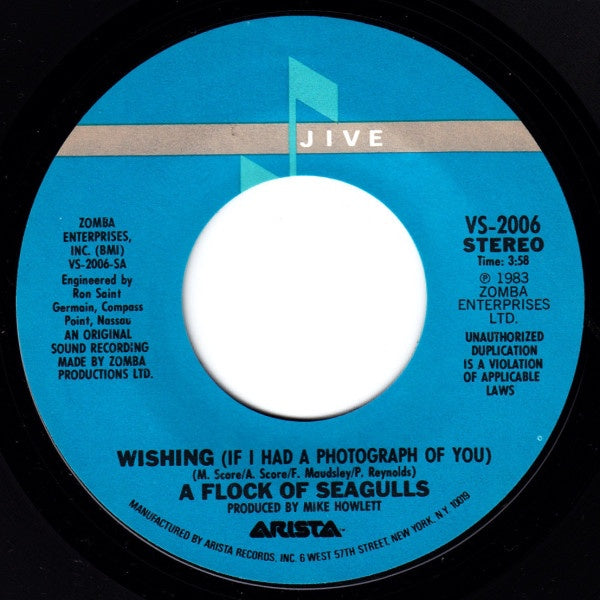 A Flock Of Seagulls - Wishing (If I Had A Photograph Of You) / Committed - VG+ 7" Single 45RPM 1983 Jive USA - Synth-Pop