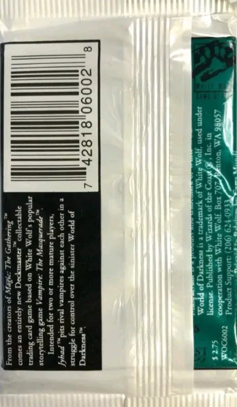 (1) One Booster Pack - 1994 Jyhad Vampire The Masquerade Booster Pack Cards Wizards of the Coast Trading Card Game - 19 Cards