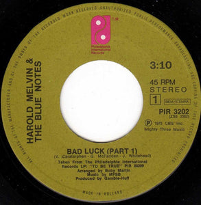 Harold Melvin And The Blue Notes – Bad Luck (Part 1 & 2) VG+ 7" Single 45rpm 1975 - Disco / Funk / Soul