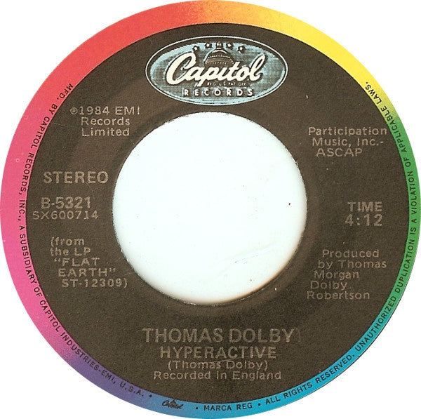 Thomas Dolby / Dolby's Cube – Hyperactive / Get Out Of My Mix - Mint- 45rpm 1984 Capitol Records - Synth-Pop