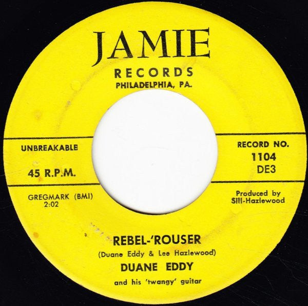 Duane Eddy And His 'Twangy' Guitar – Rebel-'Rouser / Stalkin' - VG 45rpm 1958 USA Jamie Records - Rock / Surf / Rockabilly