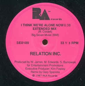 Relation Inc. – I Think We're Alone Now - M- 12" Single 1987 R&A USA - Pop / Rock