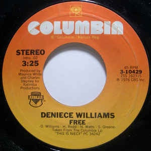 Deniece Williams – Free / Cause You Love Me Baby - VG+ 7" Single 45RPM 1976 Columbia USA - Funk / Soul