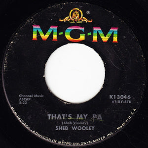Sheb Wooley – That's My Pa / Meet Mr. Lonely VG+ 7" Single 45rpm 1961 MGM Records USA - Country
