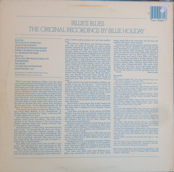 Billie Holiday – Billie's Blues (The Original Recordings By Billie Holiday)(1973) - VG+ Lp Record 1980 CBS USA Vinyl - Jazz / Blues / Vocal