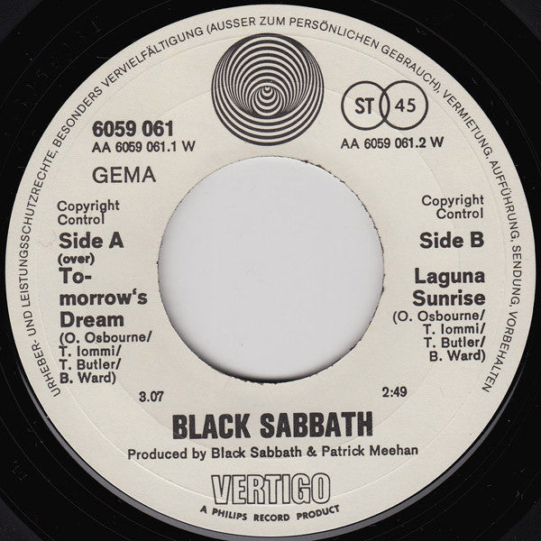 Black Sabbath – Tomorrow's Dream - VG+ 7" Single Record 1972 Vertigo Germany Vinyl & Sleeve - Prog Rock / Hard Rock