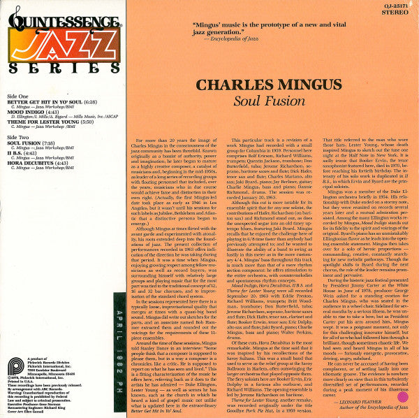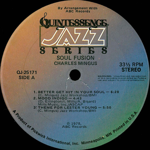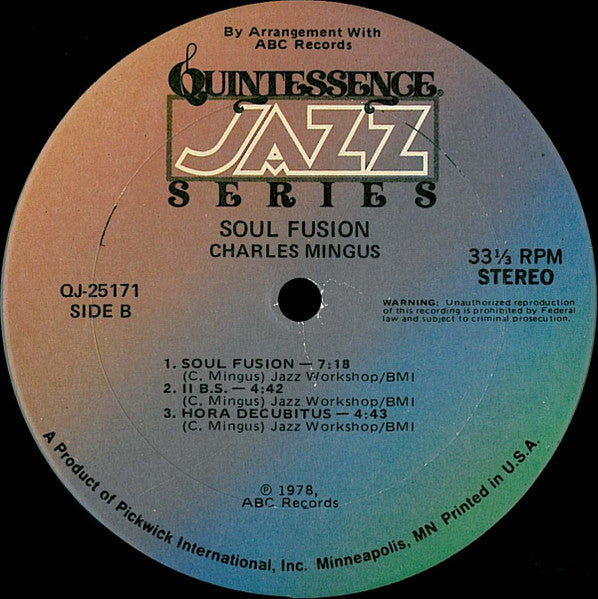 Charles Mingus - Soul Fusion - Mint- LP Record 1978 Quintessence USA Vinyl - Jazz / Bop