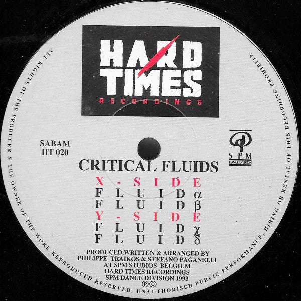 Critical Fluids - Fluid - VG+ 12" Single Record 1993 Hard Times Belgium Vinyl - Trance / Acid
