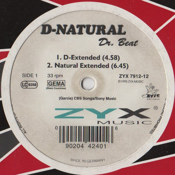D-Natural - Dr. Beat - Mint- 12" Single Record 1995 ZYX Germany Vinyl - House / Euro House