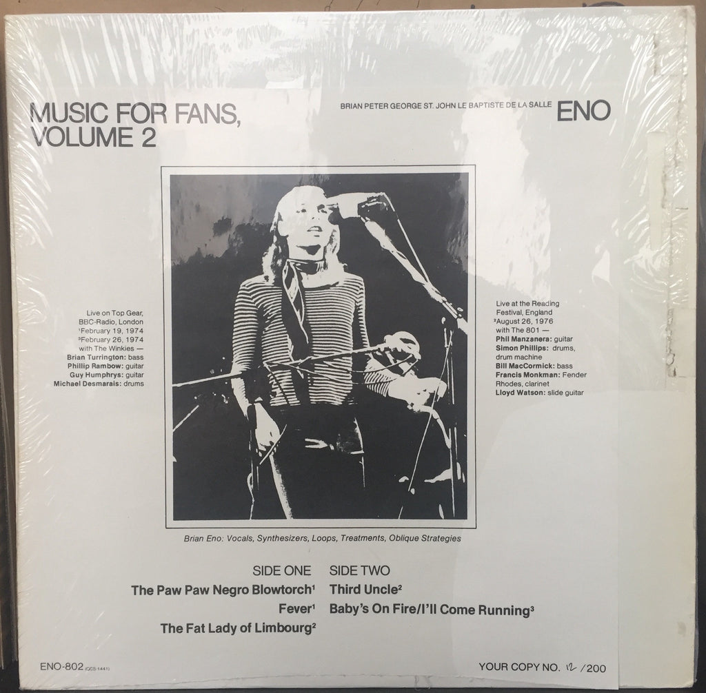 Brian Peter George St John Le Baptiste De La Salle ENO – Music For Fans Vol.2 - VG+ 1980's Stere USA (Numbered To 200 Made) - Rock