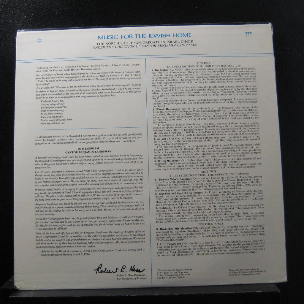 North Shore Congregation Israel - Music For The Jewish Home LP New Chicago Vinyl