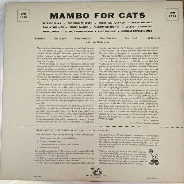 Jim Flora Cover Art - Various – Mambo For Cats - VG+ LP Record 1955 RCA USA Mono Vinyl - Jazz / Latin / Mambo